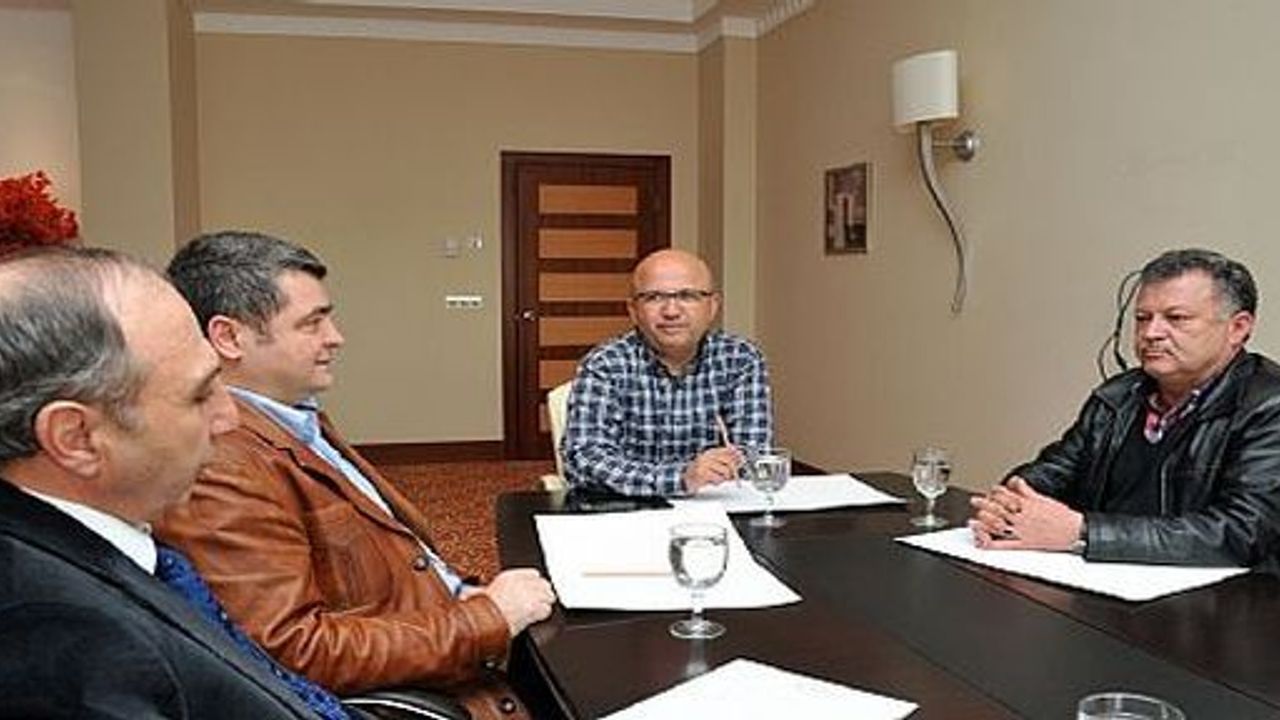 Başkan Burhanettin Çoban'ın gerçekleştirdiği toplantıya Afyon Ekmek Un Mamulleri Gıda ve Ltd Şirket Yönetim Kurulu Başkanı Abdullah Soydan, şirket ortağı Adnan Aşkar ve Mali Müşavir Kadir Pancaroğlu katıldı.